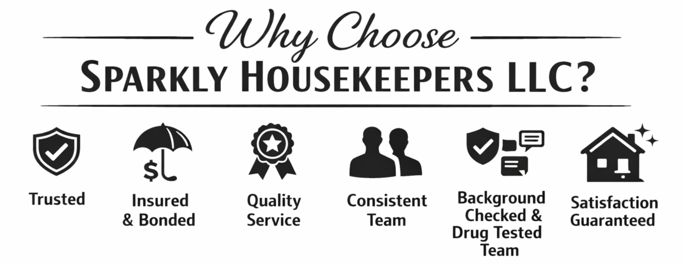 At Sparkly Housekeepers LLC, we believe a clean space sets the tone for a calmer, more productive life — whether it’s your cozy home, bustling office, or special event venue. Our professional team proudly serves Dane, Rock, Sauk, Green and Jefferson Counties, delivering consistent, detail-driven cleaning you can count on.